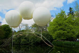 法国装置艺术家Olivier Grossetête的作品“Pont De Singe”构想出一个梦幻般的超现实主义情景——一座由三个氦气球吊起的