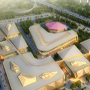 为处理与城市交通的关系,在建筑的东北角和东南角加大退让,形成主入口集散广场,作为建材家居广场的主入口。