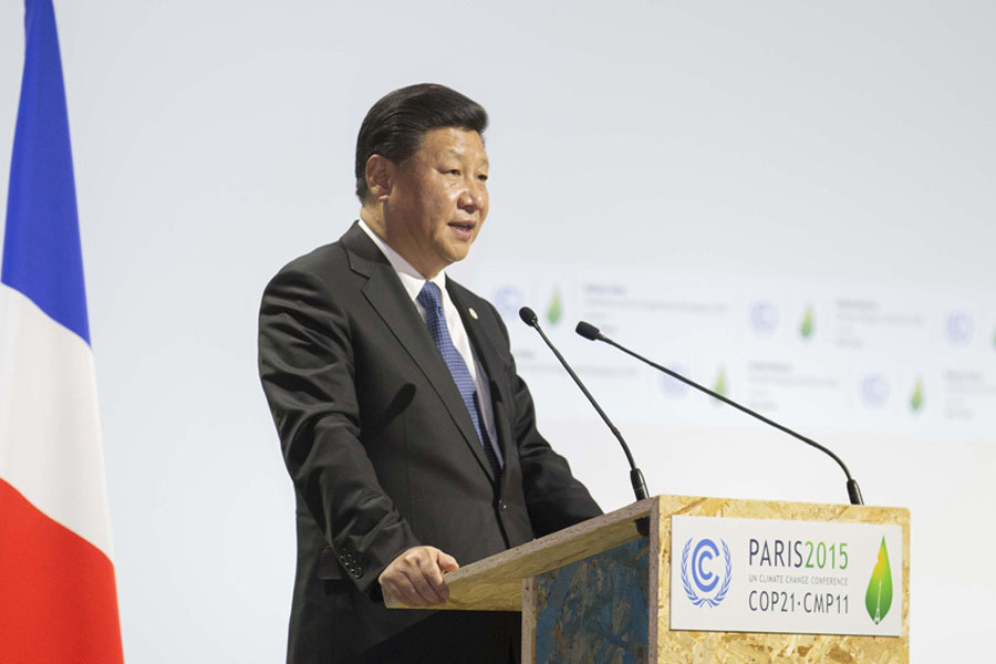 11月30日,国家主席习近平在巴黎出席第21届联合国气候变化大会开幕式,并发表题为《携手构建合作共赢、公平合理的气候变化治理机制》的重要讲话,阐