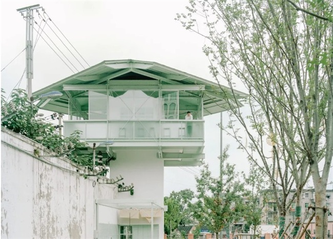 项目在合柴 1972 创意园区。园区前身是安徽省合肥监狱,重新改造后如已成为了当地热门的文创园区。第一次来看场地时是陪同甲方看另外一个餐厅项目。现场无意瞥间路边的一栋废弃建筑,便好奇问了物业该建筑的状况和用途,得知是原监狱的看守塔,由于各种原因没有与园区一起改造荒废在了一边。随即便询问是否可以改造成为园区及附近居民服务的一家 24h 小书店。项目就这样启动了。