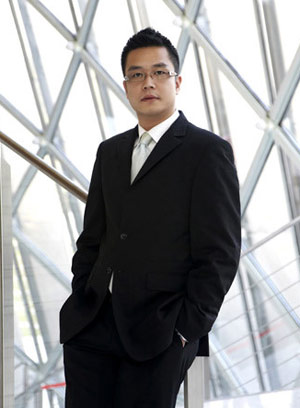 福州宽北装饰设计有限公司设计总监郑杨辉先生(右)与设计作品《海联汇》(左)